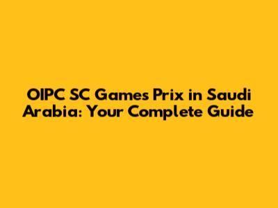 OIPC SC Games Prix In Saudi Arabia: Your Complete Guide
