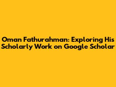 Oman Fathurahman: Exploring His Scholarly Work On Google Scholar