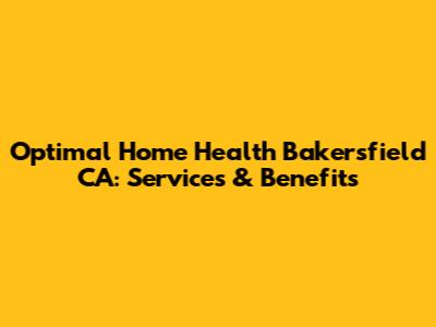 Optimal Home Health Bakersfield CA: Services & Benefits