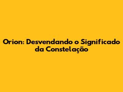 Orion: Desvendando O Significado Da Constelação