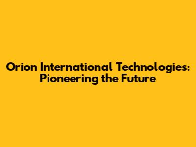 Orion International Technologies: Innovations