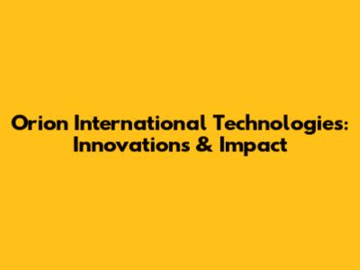 Orion International Technologies: Innovations & Impact