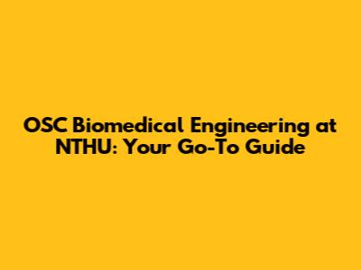 OSC Biomedical Engineering At NTHU: Your Go-To Guide