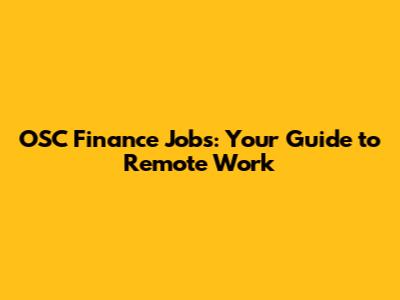 OSC Finance Jobs: Your Guide To Remote Work