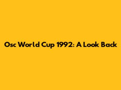 Osc World Cup 1992: A Look Back