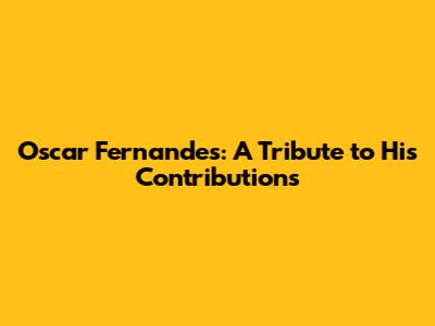 Oscar Fernandes: A Tribute To His Contributions