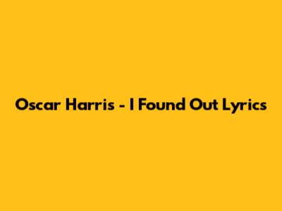 Oscar Harris - I Found Out Lyrics