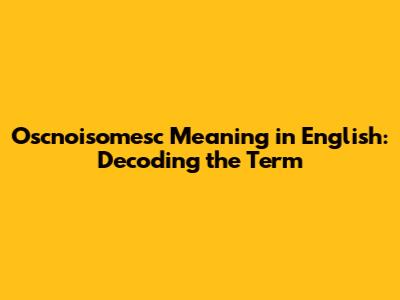 Oscnoisomesc Meaning In English: Decoding The Term