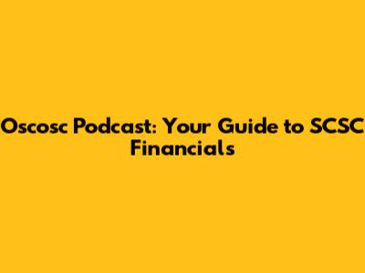 Oscosc Podcast: Your Guide To SCSC Financials