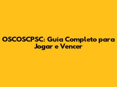 OSCOSCPSC: Guia Completo Para Jogar E Vencer