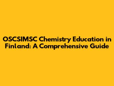 OSCSIMSC Chemistry Education In Finland: A Comprehensive Guide