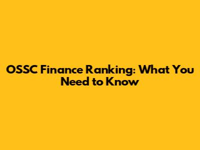 OSSC Finance Ranking: What You Need To Know