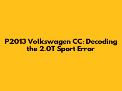 Hey car enthusiasts! Ever seen that dreaded check engine light illuminate on your Volkswagen CC 2.0T Sport? If so, and your diagnostic tool spits out the code P2013, you're in the right place. This article will break down everything you need to know about the P2013 code, including the common causes, telltale symptoms, and the solutions to get your CC back on the road. Let's dive in and unravel the mystery behind this code, so you're not left scratching your head!