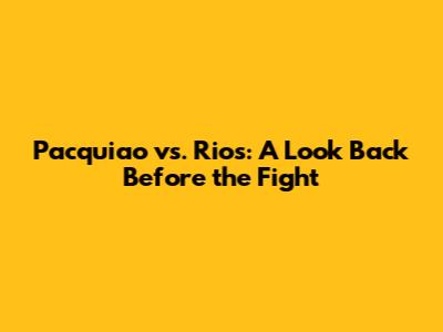 Pacquiao Vs. Rios: A Look Back Before The Fight