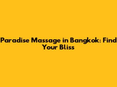 Hey guys! Are you looking for the ultimate relaxation experience in the heart of Thailand? Let's dive into the world of paradise massage in Bangkok and discover how you can find your bliss amidst the bustling city.