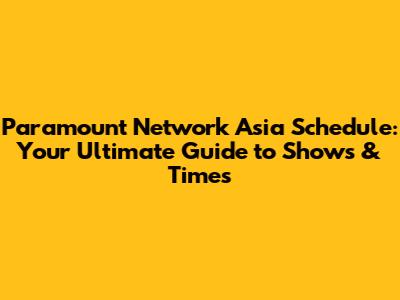 Understanding the Paramount Network Asia Schedule: What You Need to Know