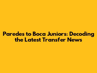 Paredes To Boca Juniors: Latest Transfer Buzz
