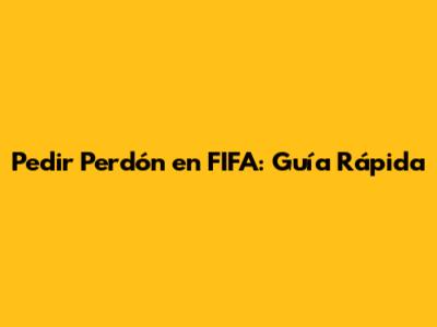 Pedir Perdón En FIFA: Guía Rápida