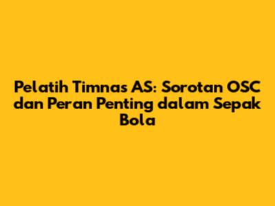 Pelatih Timnas AS: Sorotan OSC Dan Peran Penting Dalam Sepak Bola