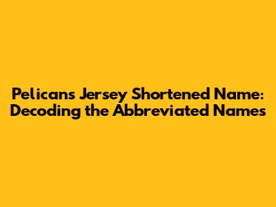 Pelicans Jersey Nicknames: Decoding The Abbreviated Names