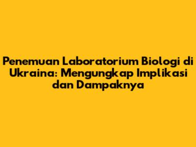 Penemuan Laboratorium Biologi Di Ukraina: Implikasi Dan Dampak