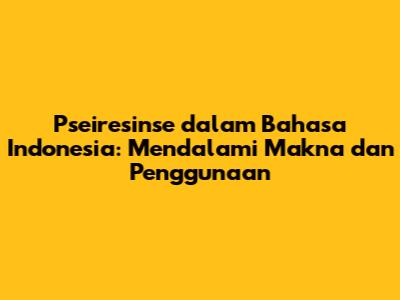 Bahasa Indonesia, dengan kekayaan kosakata dan fleksibilitasnya, seringkali mengadopsi istilah dari berbagai bahasa asing untuk memperkaya ekspresinya. Salah satu contoh menarik adalah kata 'pseiresinse'. Istilah ini mungkin terdengar asing bagi sebagian besar penutur bahasa Indonesia, namun penting untuk memahami asal usul, makna, dan konteks penggunaannya. Artikel ini akan mengupas tuntas tentang 'pseiresinse' dalam bahasa Indonesia, mulai dari etimologi hingga contoh penggunaannya dalam berbagai bidang.