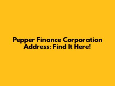 Pepper Finance Corporation Address: Find It Here!