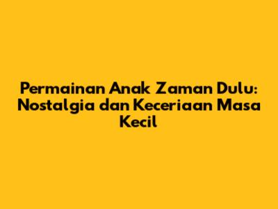 Apa itu Permainan Anak Zaman Dulu?