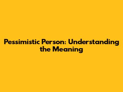 Hey guys! Ever wondered what it really means to be a pessimistic person? Let's dive deep into understanding pessimism, its roots, impact, and how it differs from other mindsets. Trust me, it’s more than just seeing the glass half empty!