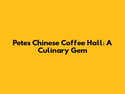 Pete's Chinese Coffee Hall: A Culinary Gem