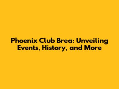 Phoenix Club Brea: Your Guide To Events & More