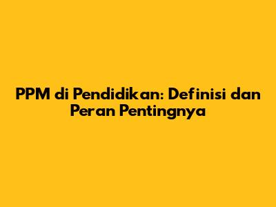 PPM Di Pendidikan: Definisi Dan Peran Pentingnya