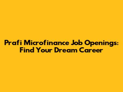 Prafi Microfinance Job Openings: Find Your Dream Career