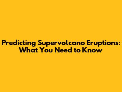 Predicting Supervolcano Eruptions: What You Need To Know