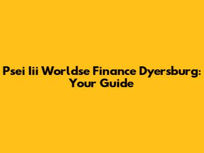Psei Iii Worldse Finance Dyersburg: Your Guide