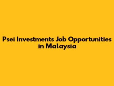 Psei Investments Job Opportunities In Malaysia