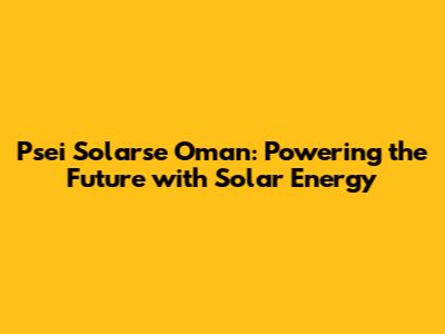 Psei Solarse Oman: Your Solar Solutions