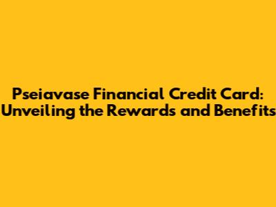 Pseiavase Financial Credit Card: Your Guide To Rewards & Benefits
