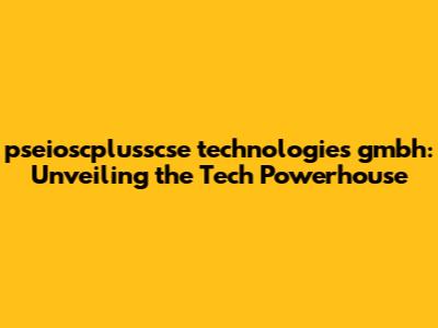 Pseioscplusscse Technologies Gmbh: What You Need To Know