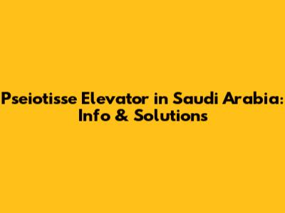 Pseiotisse Elevator In Saudi Arabia: Info & Solutions