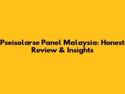 Pseisolarse Panel Malaysia: Honest Review & Insights