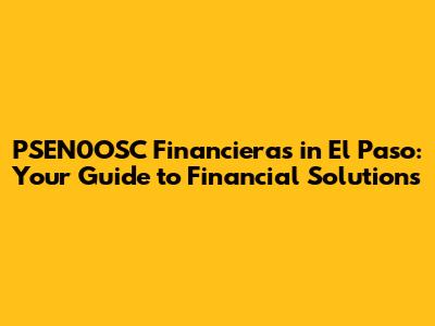 PSEN0OSC Financieras In El Paso: Your Guide