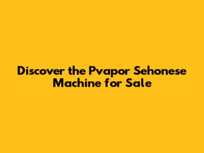 Pvapor Sehonese Machine For Sale: Features & Benefits