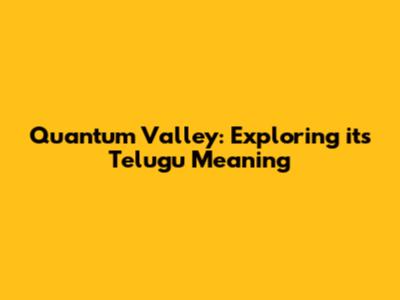 Quantum Valley Meaning: Unveiling The Telugu Translation