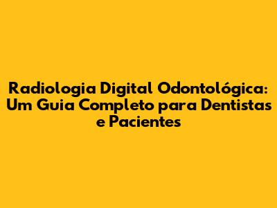 Radiologia Digital Odontológica: Guia Completo E Atualizado