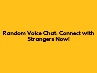Random Voice Chat: Connect With Strangers Now!