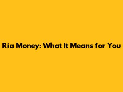 Ria Money: What It Means For You