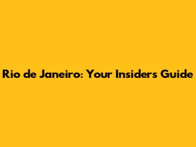 Rio De Janeiro: Your Insider's Guide