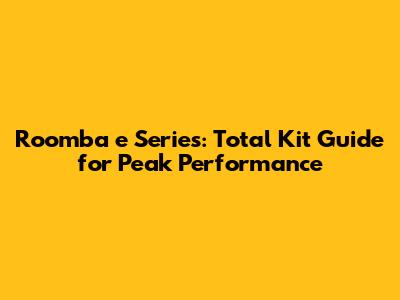 Roomba E Series: Total Kit Guide For Peak Performance