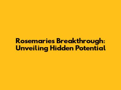 Rosemarie's Breakthrough: Unveiling Hidden Potential
